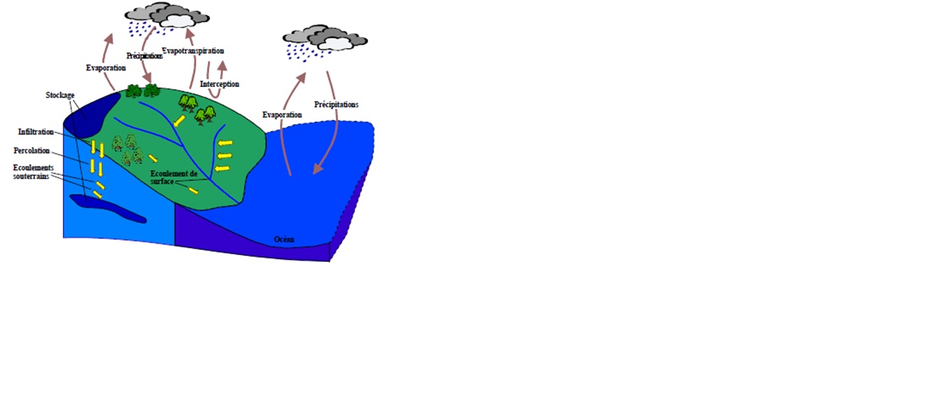 L'équation du bilan hydrique se fonde sur l'équation de continuité et peut s'exprimer comme suit, pour une période et un bassin donnés :