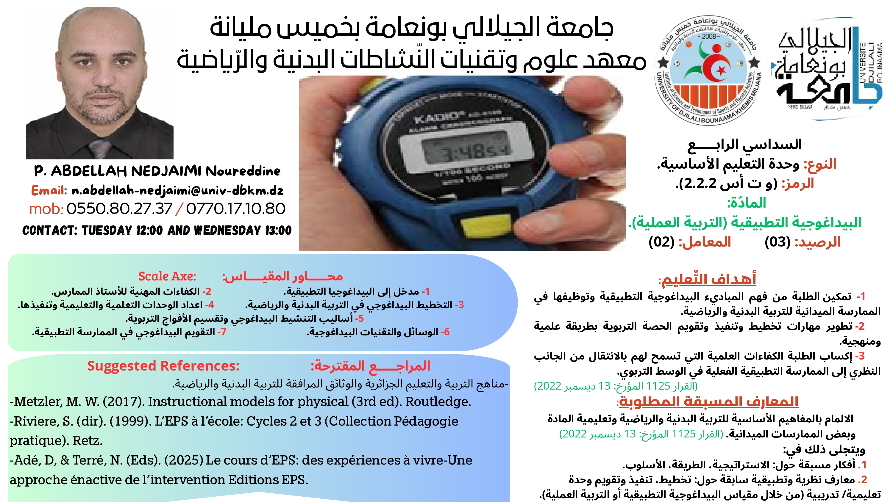 • معلم: Noureddine ABDELLAH NEDJAIMI