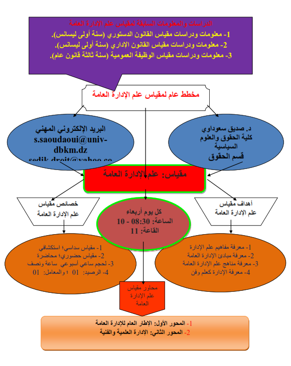 هو مقياس سداسي وأساسي وهام؛ ومقياس استكشافي؛ وموجه لطلبة السنة الأولى ماستر؛ تخصص قانون إدارة وتسيير الجماعات المحلية؛ ويرتبط المقياس بما يتلقاه الطلبة في الليسانس في الجذع المشترك من السنة الأولى لقسم الحقوق ويتمثل في مقياس القانون الدستوري والأنظمة السياسية بصورة عامة وكمبدأ عام؛ ويتعلق مباشرة بمقياس القانون الإداري من السنة الأولى جذع مشترك؛ ومقياس الوظيفة العمومية من السنة الثالثة تخصص القانون العام.