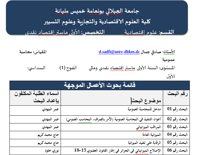 Select section المحور الأول: الإطار النظري للمحاسبة العمومية.