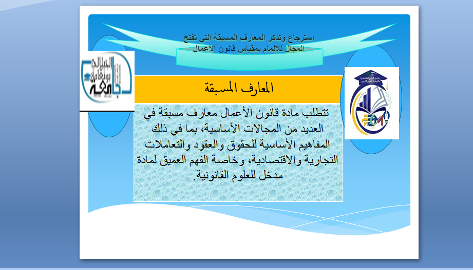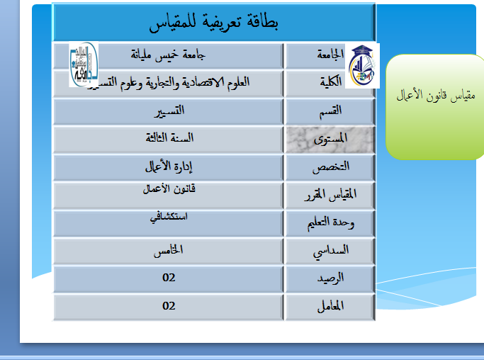 ذا الفضاء خاص بالطلبة لتبادل الأفكار والمعلومات الخاص بمقياس قانون الأعمال