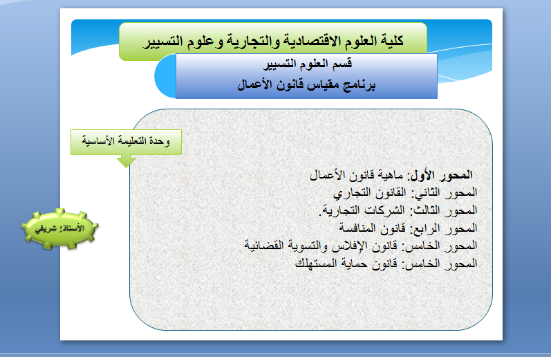 أعزائي الطلبة ستجدون في محتوى هذا المقياس أهم المحاضرات الخاصة بمقياس قانو الأعمال