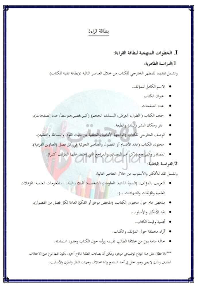 منهجية إعداد بطاقة قراءة